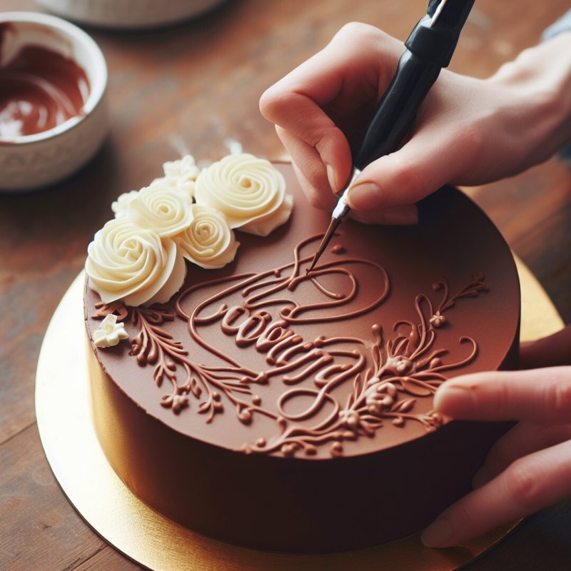 Рисование шоколадом на торте