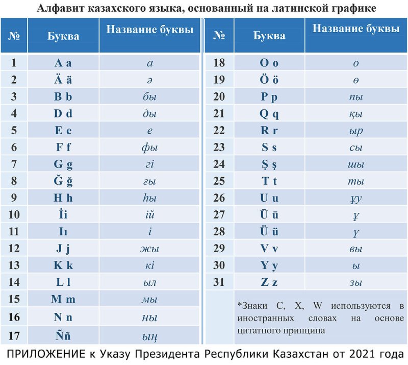 ![Новый казахский алфавит на латинице]()