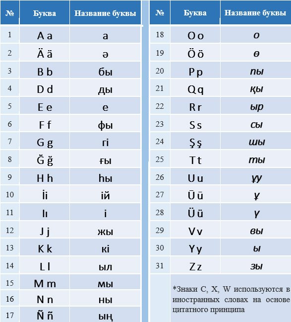 ![Алфавит казахского языка с переводом на русский и произношением]()