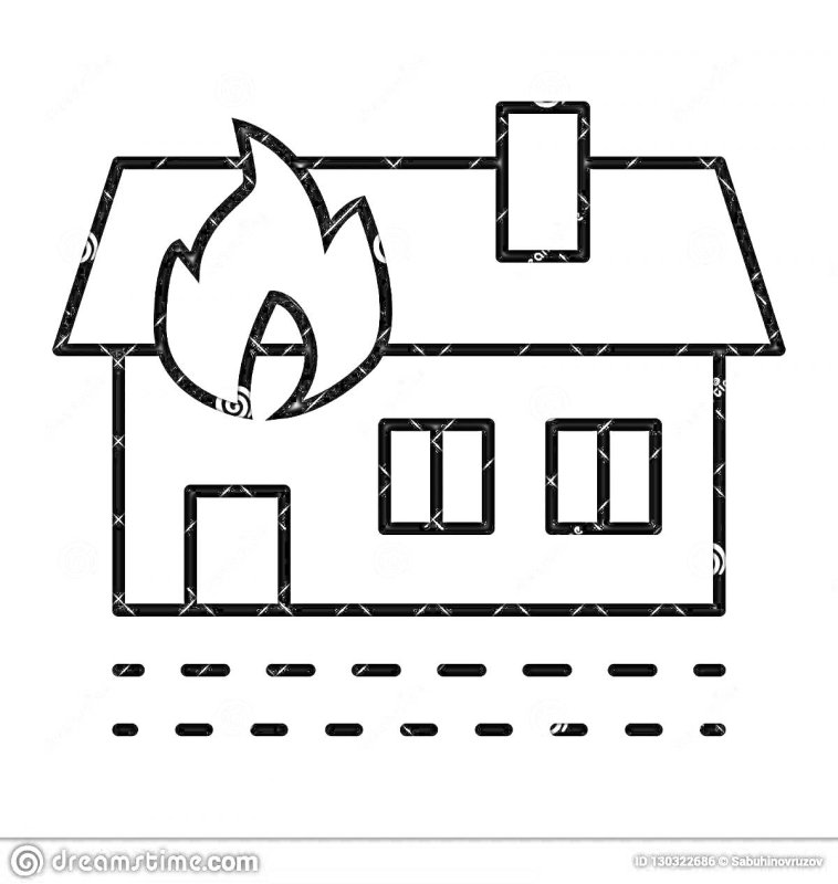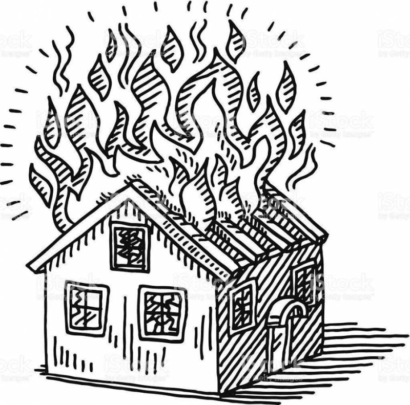 ![Горящий дом раскраска]()