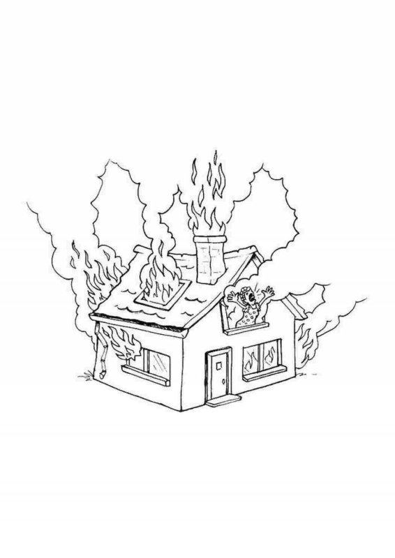 Горящий дом раскраска