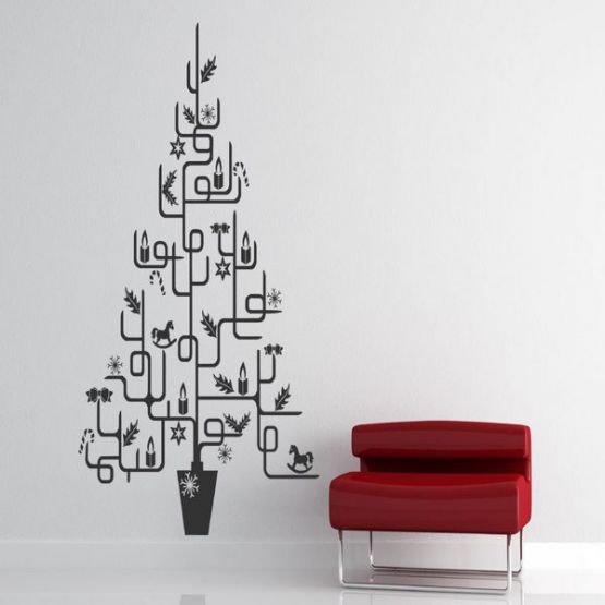 ![Новогоднее дерева на стене]()