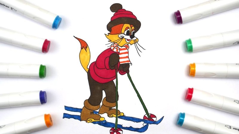 кот леопольд на лыжах