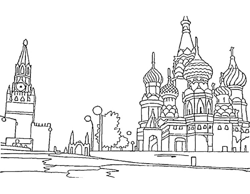 ![Храм Василия Блаженного в Москве рисунок легкий]()