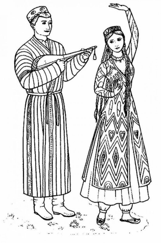 ![Башкирский национальный костюм башкир раскраска]()