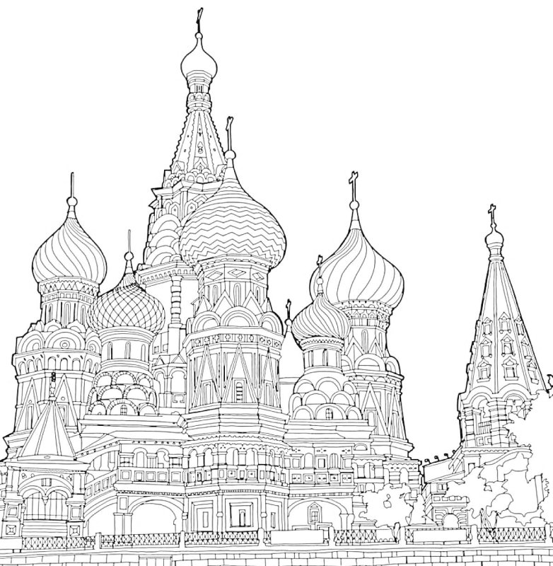 ![Раскраска храм Василия Блаженного в Москве для детей]()