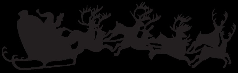 ![Силуэт Деда Мороза на санях с оленями]()