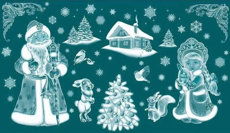 ![Новогодние вытанки на окна дед Мороз и Снегурочка]()