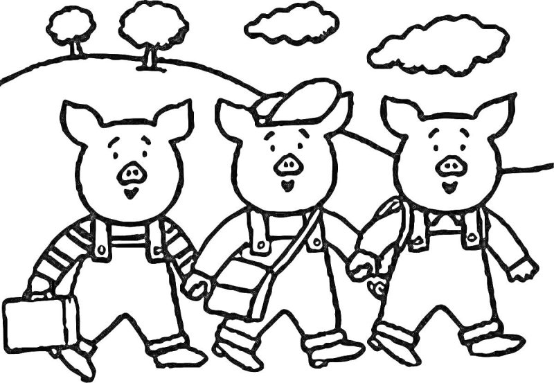 Три поросенка раскраска