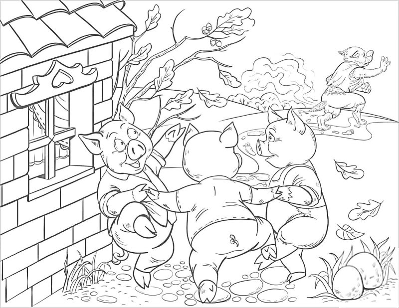 ![Три поросенка раскраска]()