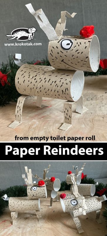 ![Олень из втулки от туалетной бумаги своими руками для детей]()