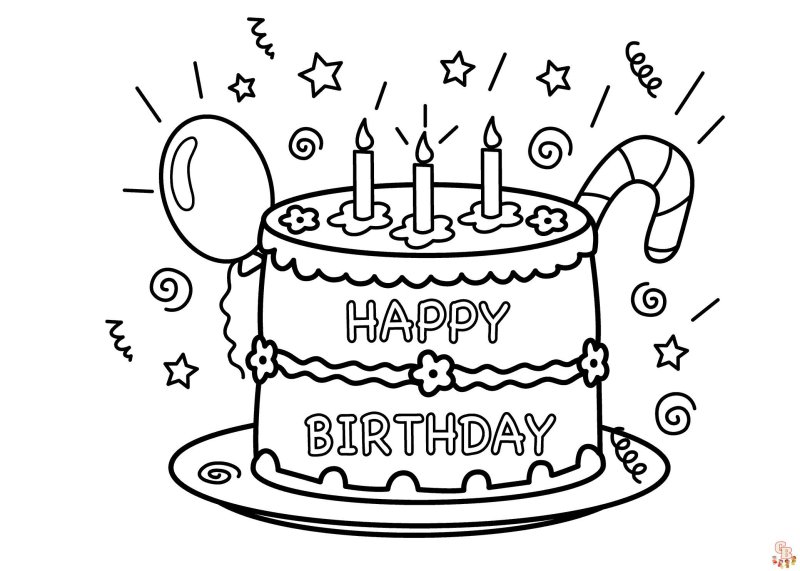 Раскраска торт на день рождения