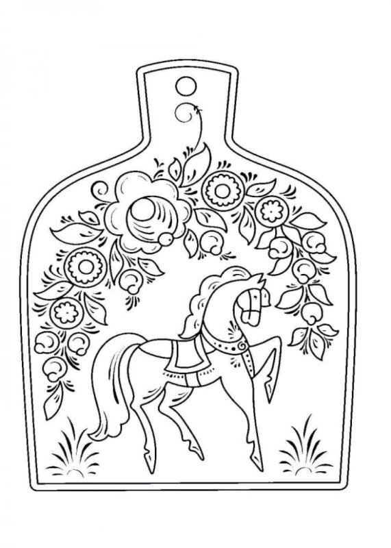 ![Городецкая роспись доски в старшей группе раскраска]()