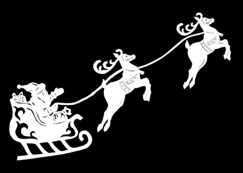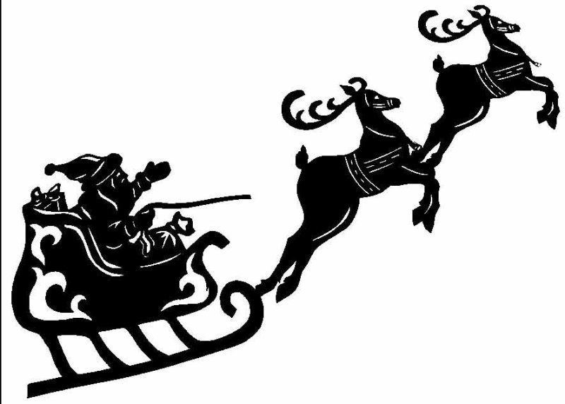 ![Силуэт Деда Мороза на санях]()