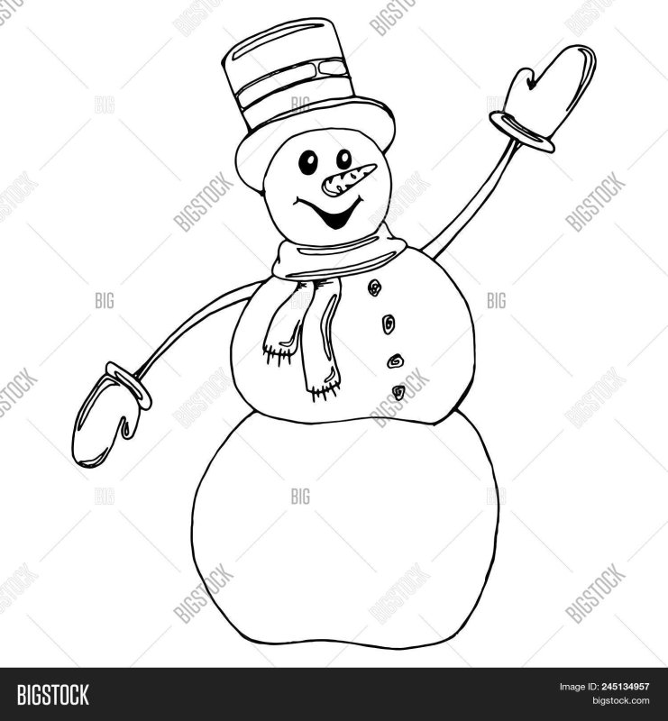 Снеговик картинка для детей раскраска