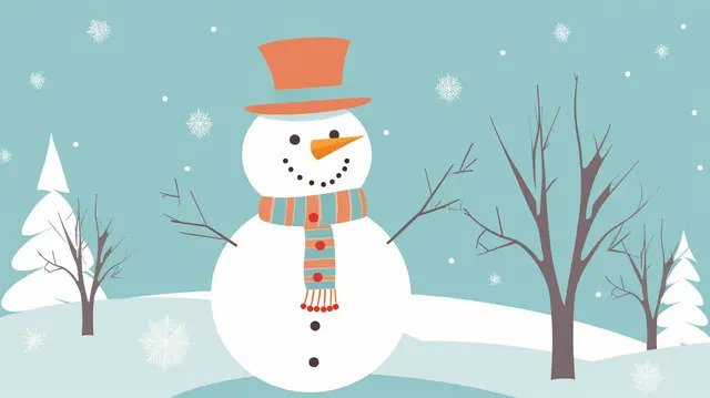 ![снеговик в шапке и шарфе]()